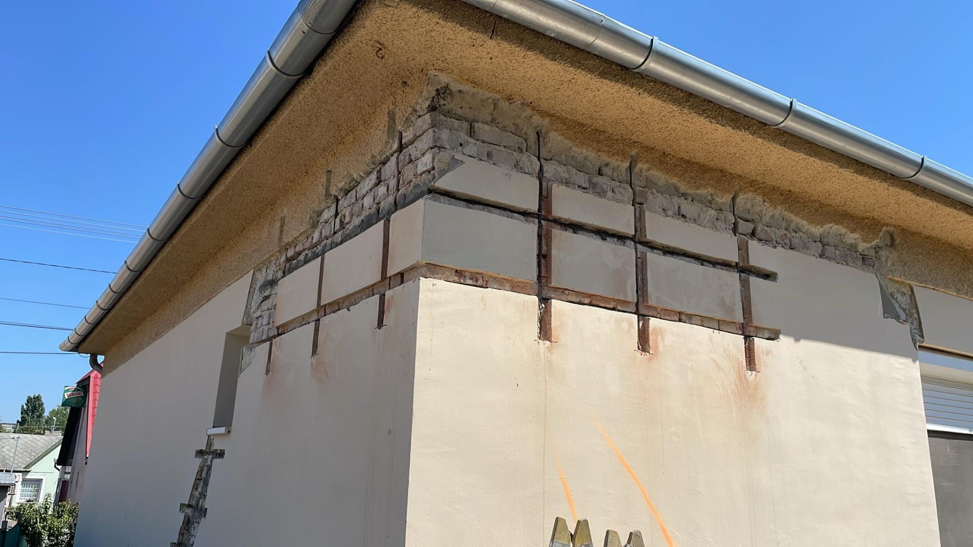 A fal felületét megtisztítják, a laza vakolatot eltávolítják, hogy a repedések és a falazat szerkezete jól látható legyen. Ezt követően kijelölik a hornyok és fúrások helyét vízszintesen vagy átlósan, a tervezett megerősítési síkok mentén.